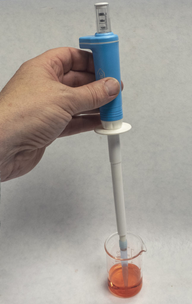These devices can be set to suck up a set amount of liquids into a disposable ‘tip’ by simply pressing and releasing a button on top. They are much faster and more convenient, though more expensive to buy.