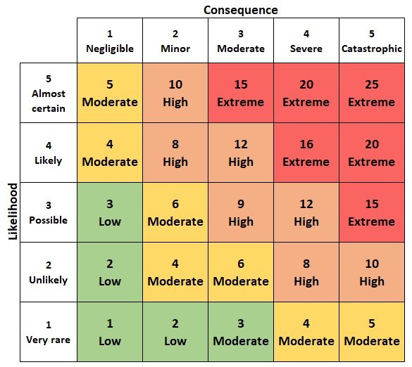 In our view, they are not especially helpful. While it may make the final assessment simpler in some cases, all that happens is endless discussion about the particular likelihood or consequence rating. In addition, we have a natural antipathy towards using numerical values for things that are not measurable in numerical terms. What doe a possibility of 3 even mean?